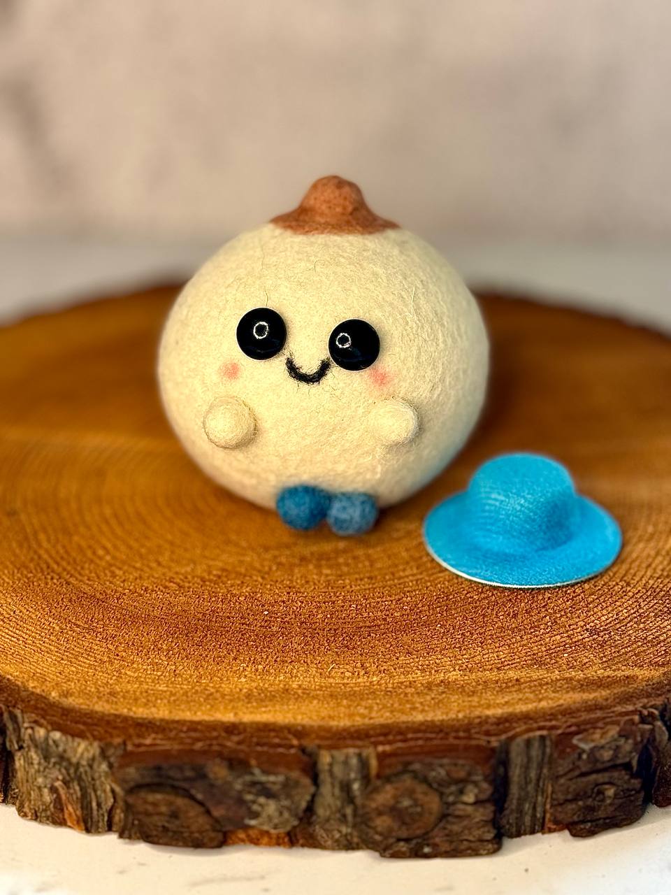 The doll stands about 2.6 inches tall and comes with a cute matching hat. Available in a variety of colors, with slight variations in shape and shade – that’s the beauty of handmade!