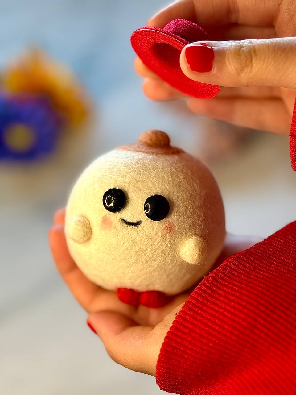 This adorable needle felted doll is handmade with love from 100% pure New Zealand wool. Soft, high-quality, and full of personality, each one is carefully crafted and completely unique.